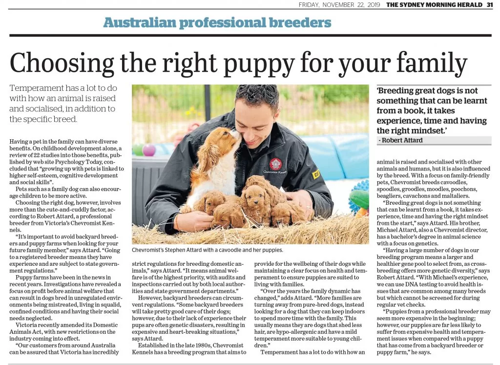 Our Breeding Program uses DNA testing for 30+ genetic diseases. Michael Attard, with a degree in Animal Science (Genetics) and Honours in Immunology from Melbourne University and CSIRO, provides expert guidance.